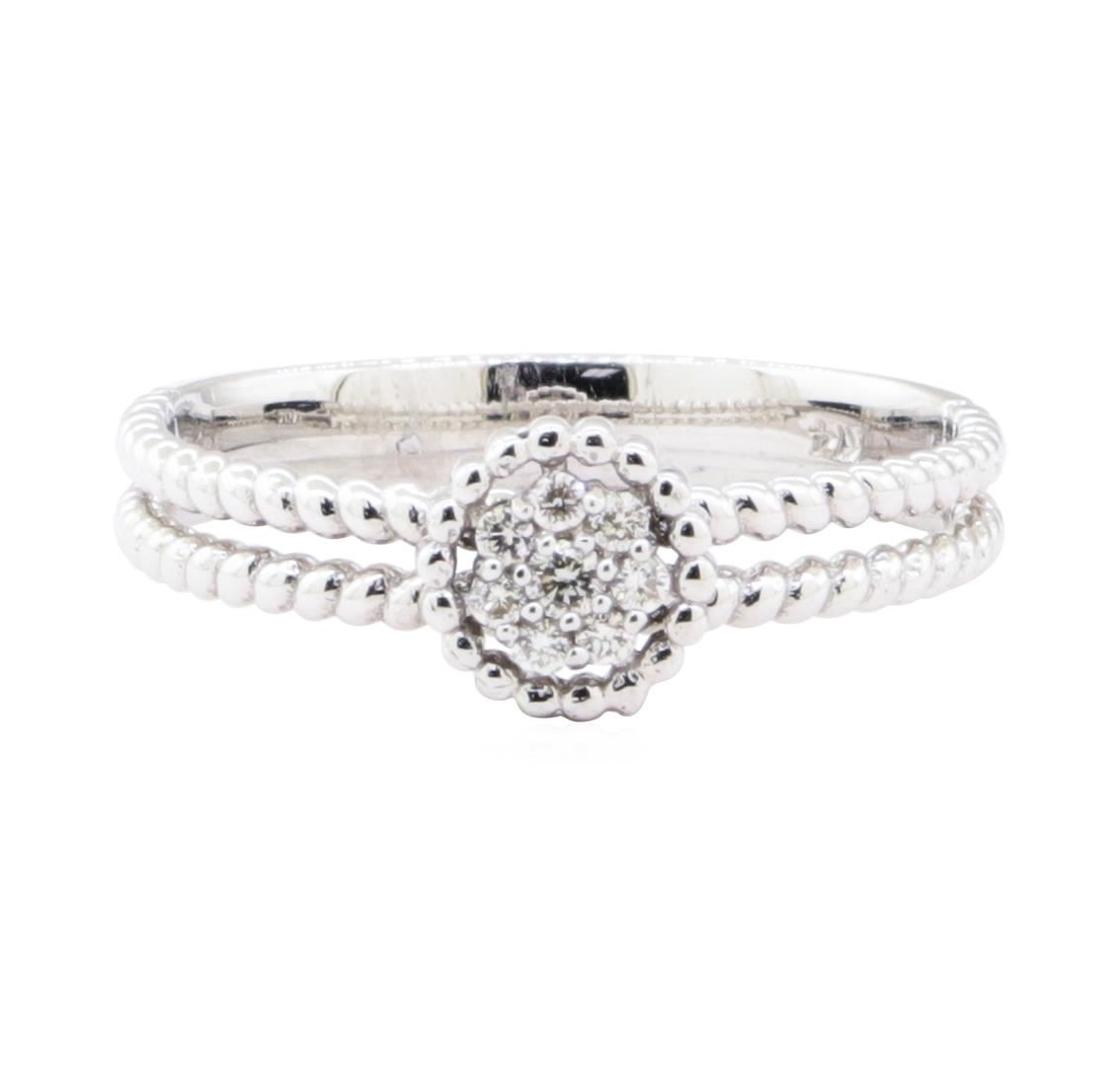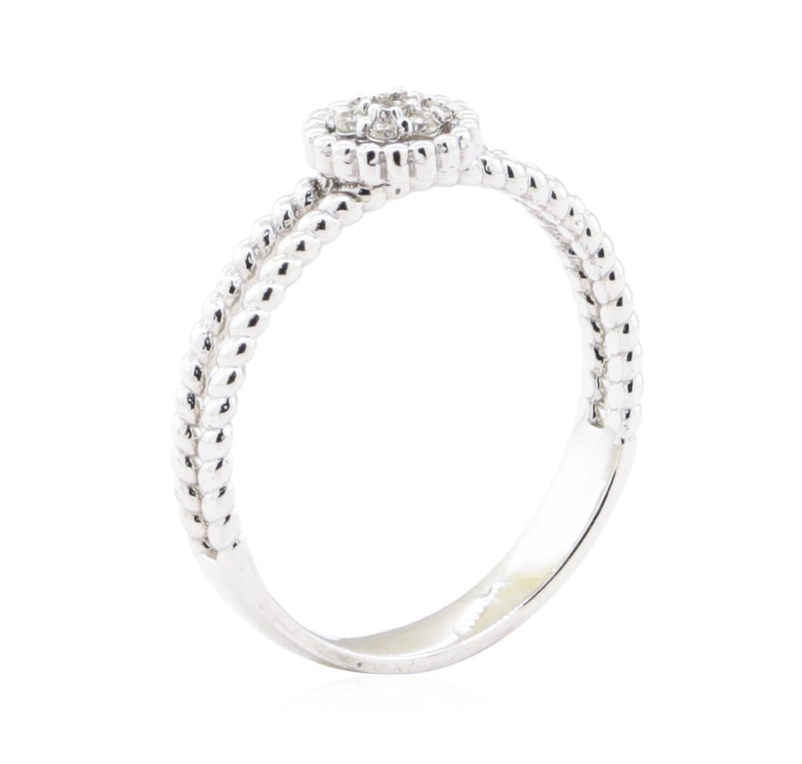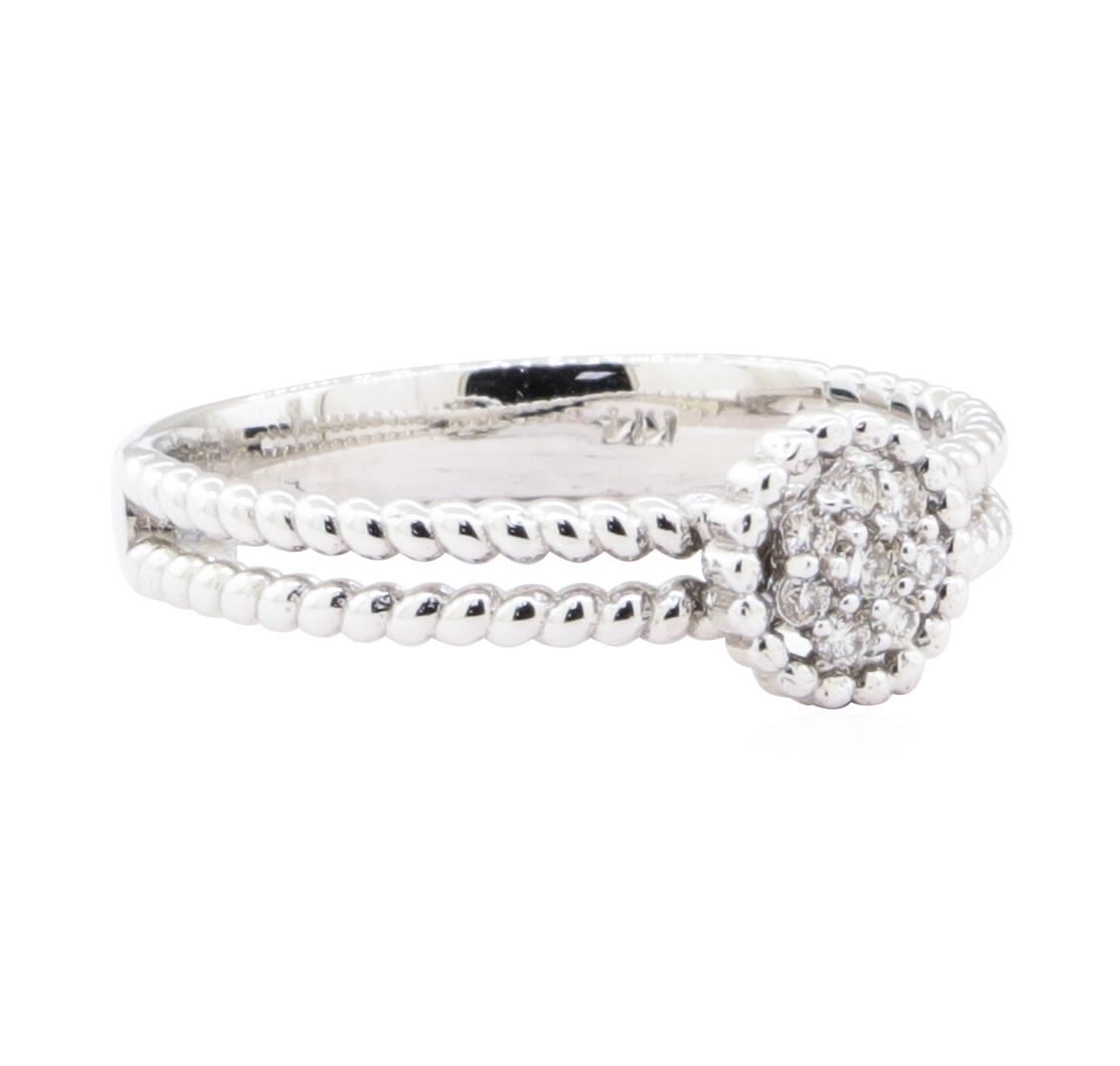 One diamond cluster ring featuring: 14KT white gold weighing 2.4 grams containing diamonds weighing 0.08ctw.