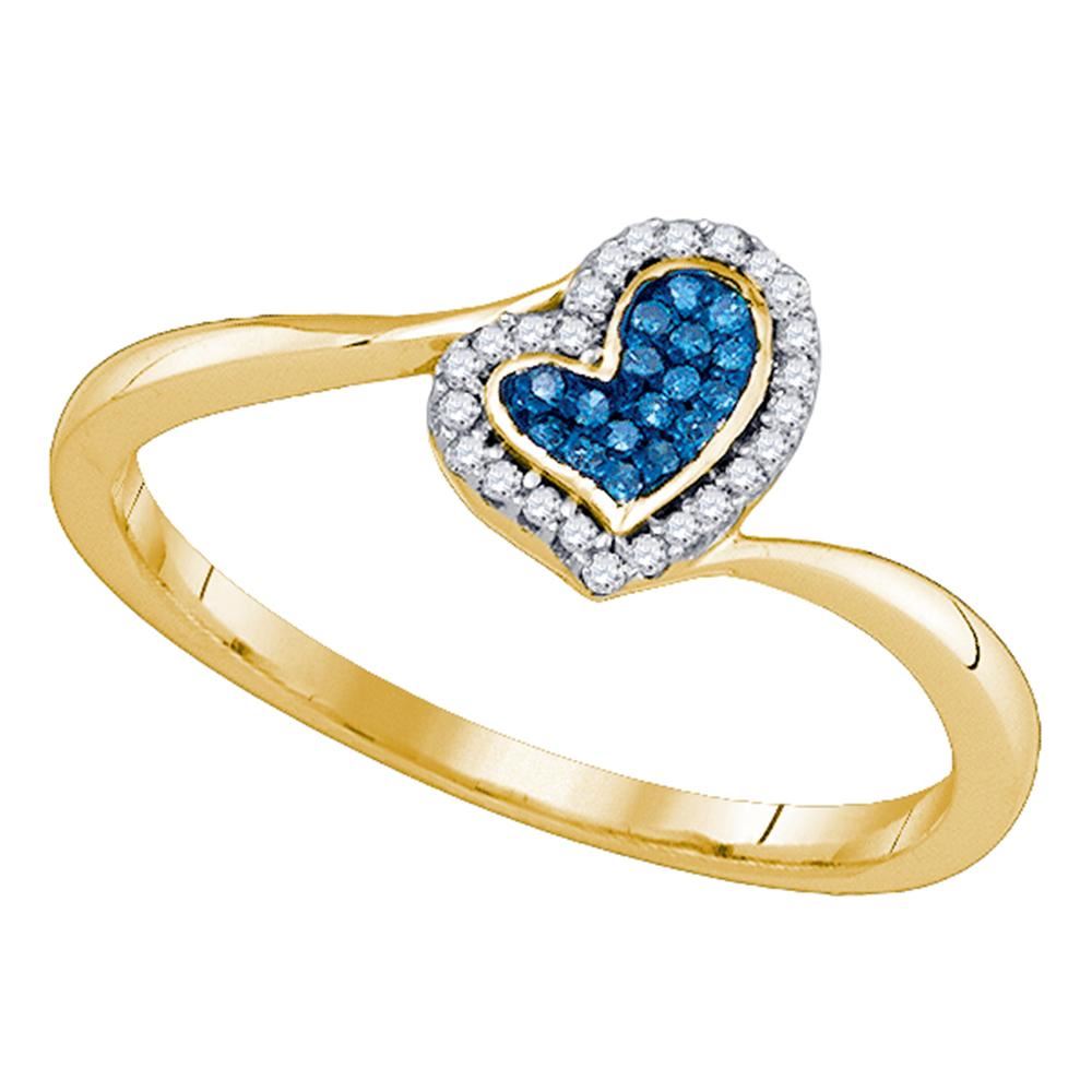 REF-13N4F- SKU: GD80880 ---- 0.09 CTW Blue Color Diamond Heart Love Ring 10KT Yellow Gold