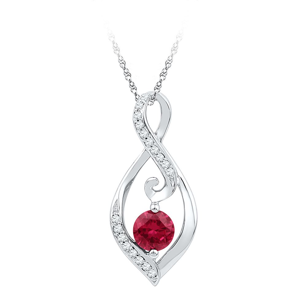 REF-12W8K- SKU: GD101025 ---- 0.09 CTW Created Ruby Solitaire Diamond Teardrop Pendant 10KT White Gold