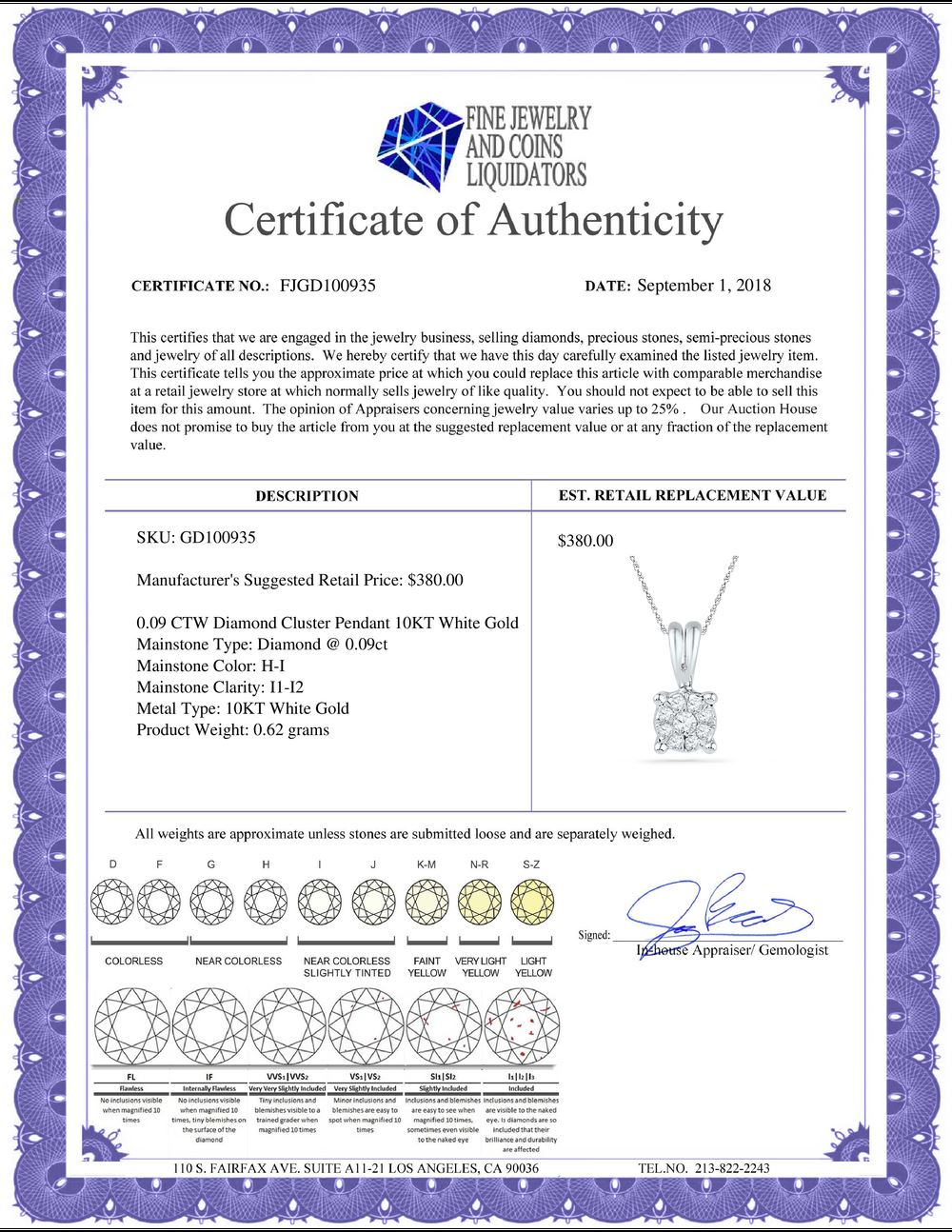 REF-9M7H- SKU: GD100935 ---- 0.09 CTW Diamond Cluster Pendant 10KT White Gold