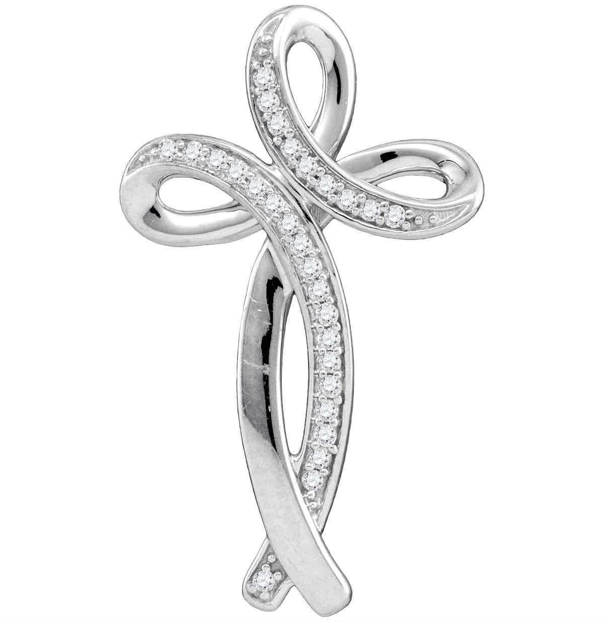 REF-13H4M- SKU: GD93417 ---- 0.09 CTW Diamond Rounded Cross Pendant 10KT White Gold