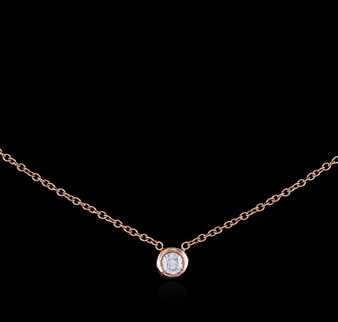 One necklace featuring: 14KT rose gold weighing 1.66 grams containing one diamond with a total weight of 0.09ct.