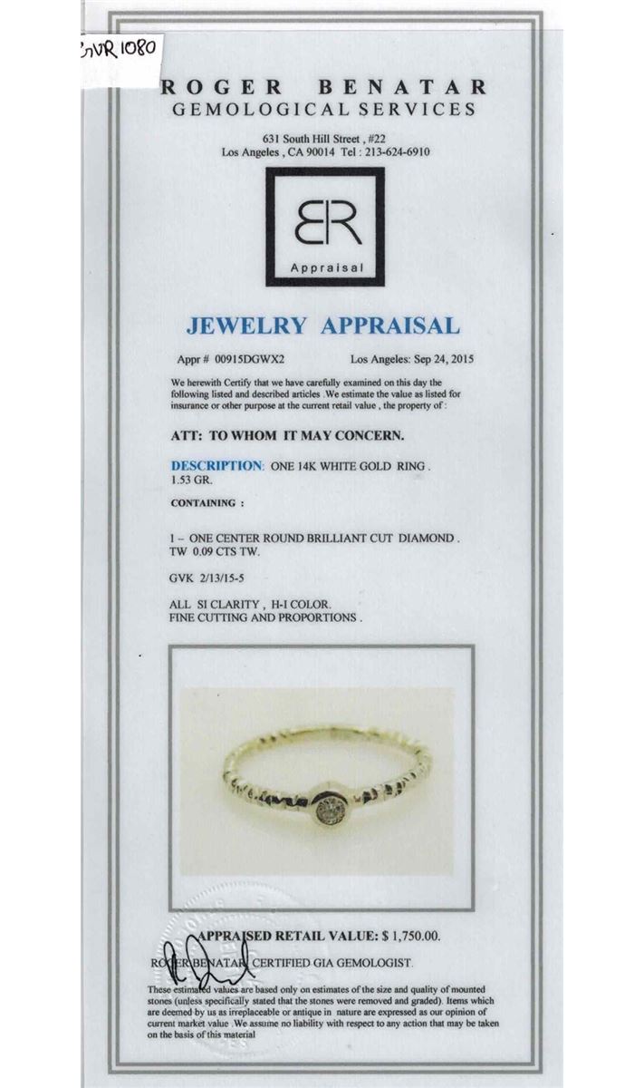14K WHITE GOLD NATURAL DIAMOND RING:1.53 GRAMS/DIAMOND:0.09CT//#GVR1080