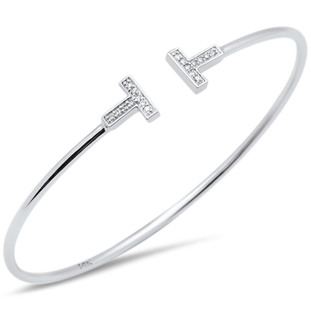 0.09ct 14K White Gold 3.64gm Diamond Open T Bangle Bracelet Standard Wrist Size 7.5"
