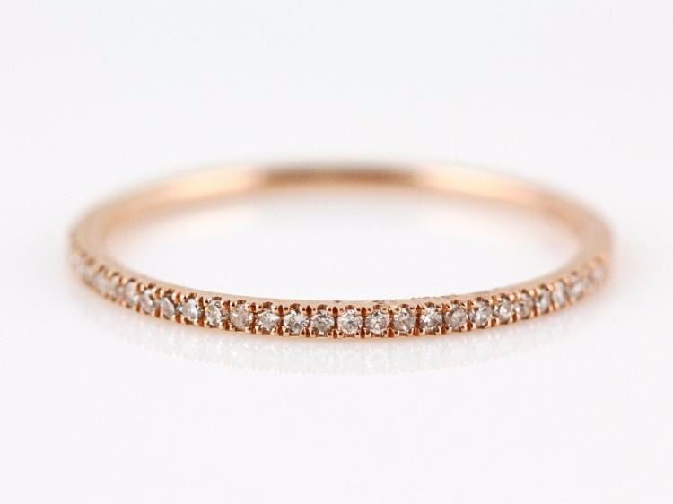 |**Total Carat Weight:0.09|**Clarity:SI2-SI3|**Cut:Verry Good|**Setting:Micro Pave Set|**Main Stone:|**MAIN Stone Treatment:Not Enhanced|**Main Stone Color:|**Main Stone Color:Round|**Theme:|**Length Inches:|**Ring Size:|**Style:Stackable Band|**Metal Purity:14k|**Metal:Rose Gold|**Gold Weight:0.76g|**Dimension:|**Diamond Color:G-H|**Sizable:|**Sizable:A brand-new, unused, and unworn item (including handmade items) in the original packaging (such as the original box or bag) and/or with the original tags attached|**Remarks: Colorless Diamonds, With no visible inclusions to the unaided eye. 0.09ct - 31pcs - 0.7mm Round Clear Diamond (Not Enhanced) SETTING: Micro Pave Set BAND WIDTH: 1.1mm Approx. WEIGHT OF GOLD: 0.76g 14K Solid Rose Gold - ("14K" Metal Stamp)