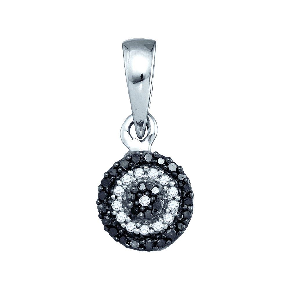 REF-11M9A ---- 0.1 CTW Black Colored Diamond Concentric Circle Cluster Pendant 10K White Gold - SKU: GD83401