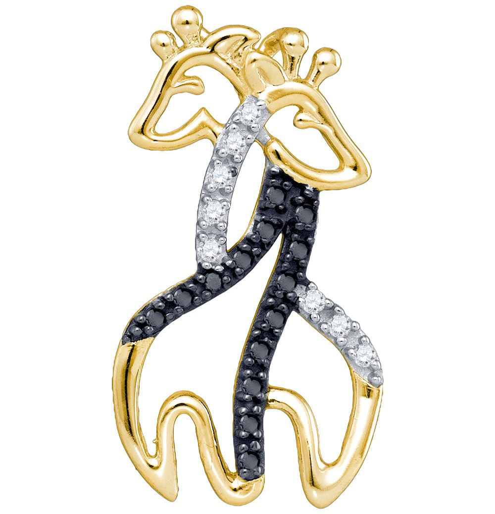REF-11T9K ---- 0.1 CTW Black Colored Diamond Giraffe Animal Pendant 10K Yellow Gold - SKU: GD81789