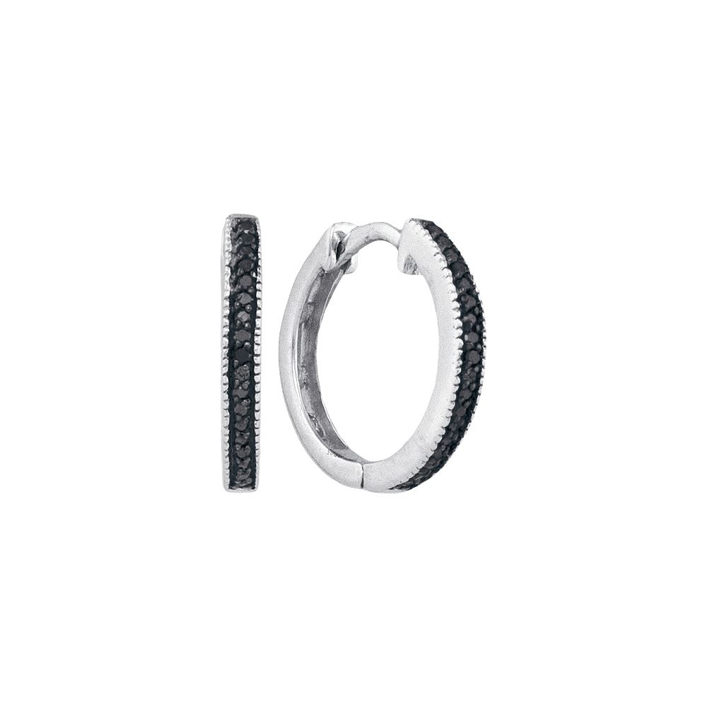 REF-13H9X ---- 0.1 CTW Black Colored Diamond Hoop Earrings 10K White Gold - SKU: GD92541