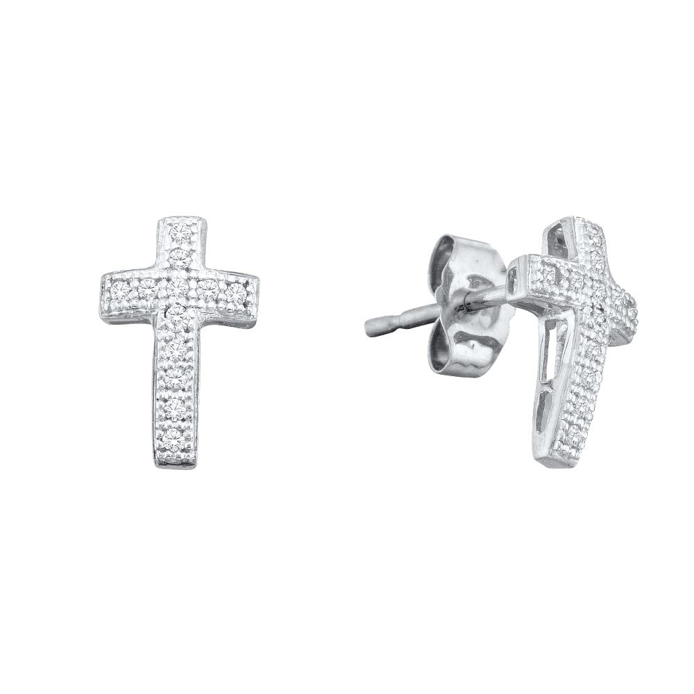 REF-13Y9V ---- 0.1 CTW Natural Diamond Cross Cluster Earrings 10K White Gold - SKU: GD50134