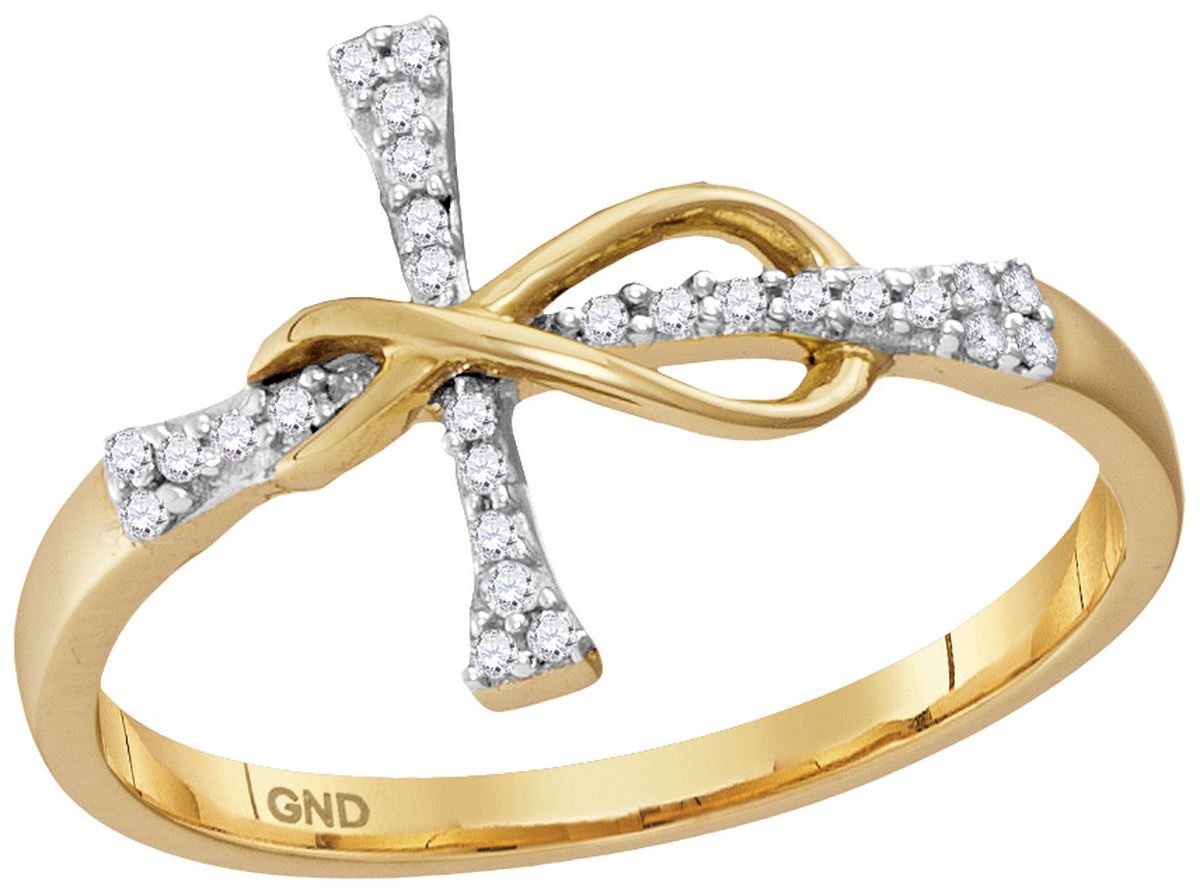 REF-15Y2V ---- 0.1 CTW Natural Diamond Cross Faith Band 10K Yellow Gold - SKU: GD115018