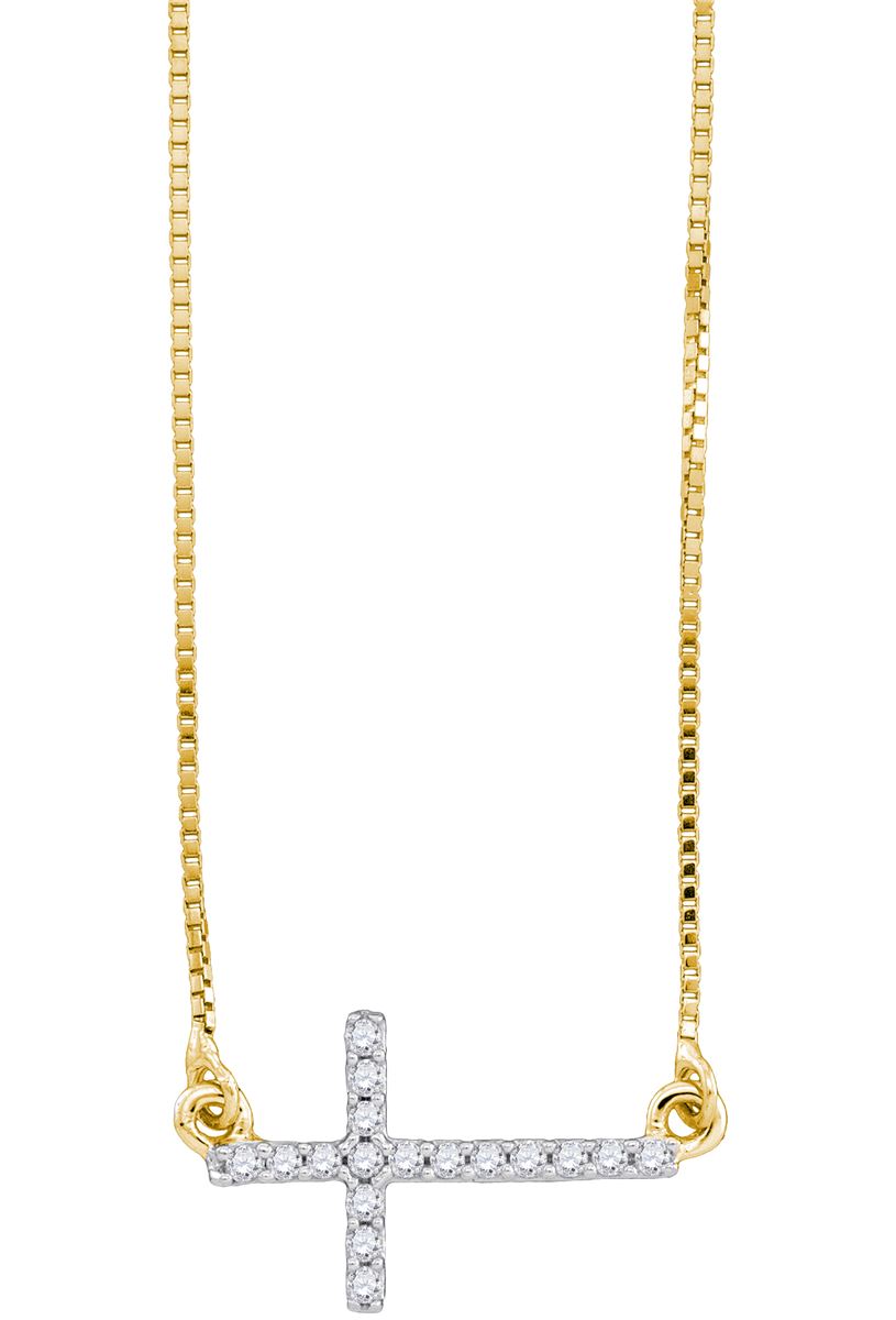 REF-17F9M ---- 0.1 CTW Natural Diamond Cross Pendant 10K Yellow Gold - SKU: GD90686