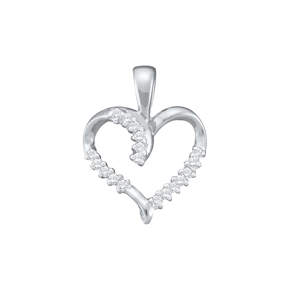 REF-11W9H ---- 0.1 CTW Pave-set Diamond Open-center Heart Valentines Pendant 10K White Gold - SKU: GD23200