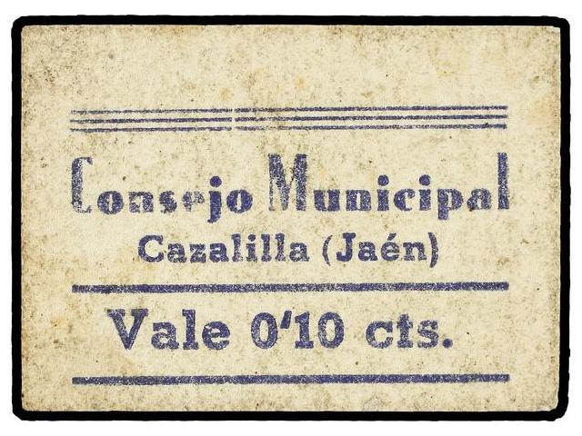 0,10 Céntimos. S/F. C.M. de CAZALILLA (Jaén). Cartón. (Algo sucio). ¿INÉDITO?. KG-No cat. Mont-No cat. MBC+.