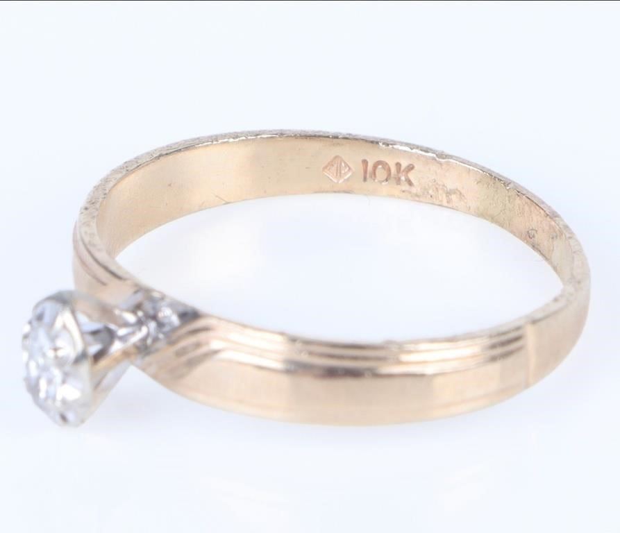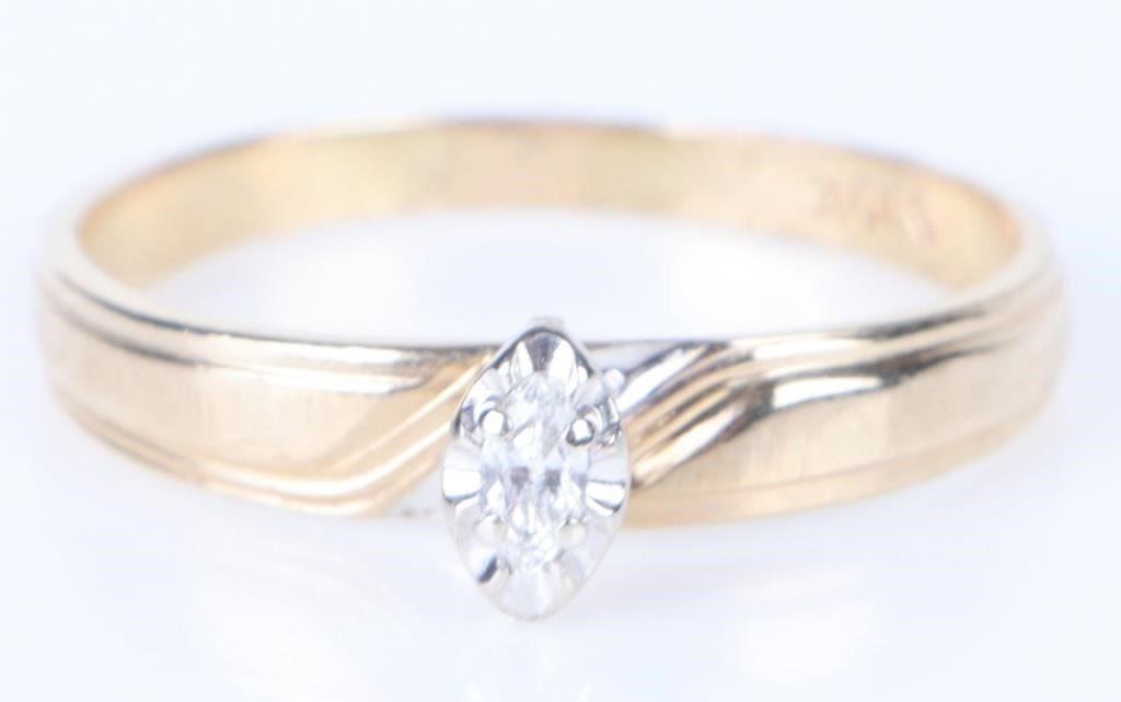 0.10 carat Diamond Marquis Cut Solitaire 10 karat yellow Gold Ring.