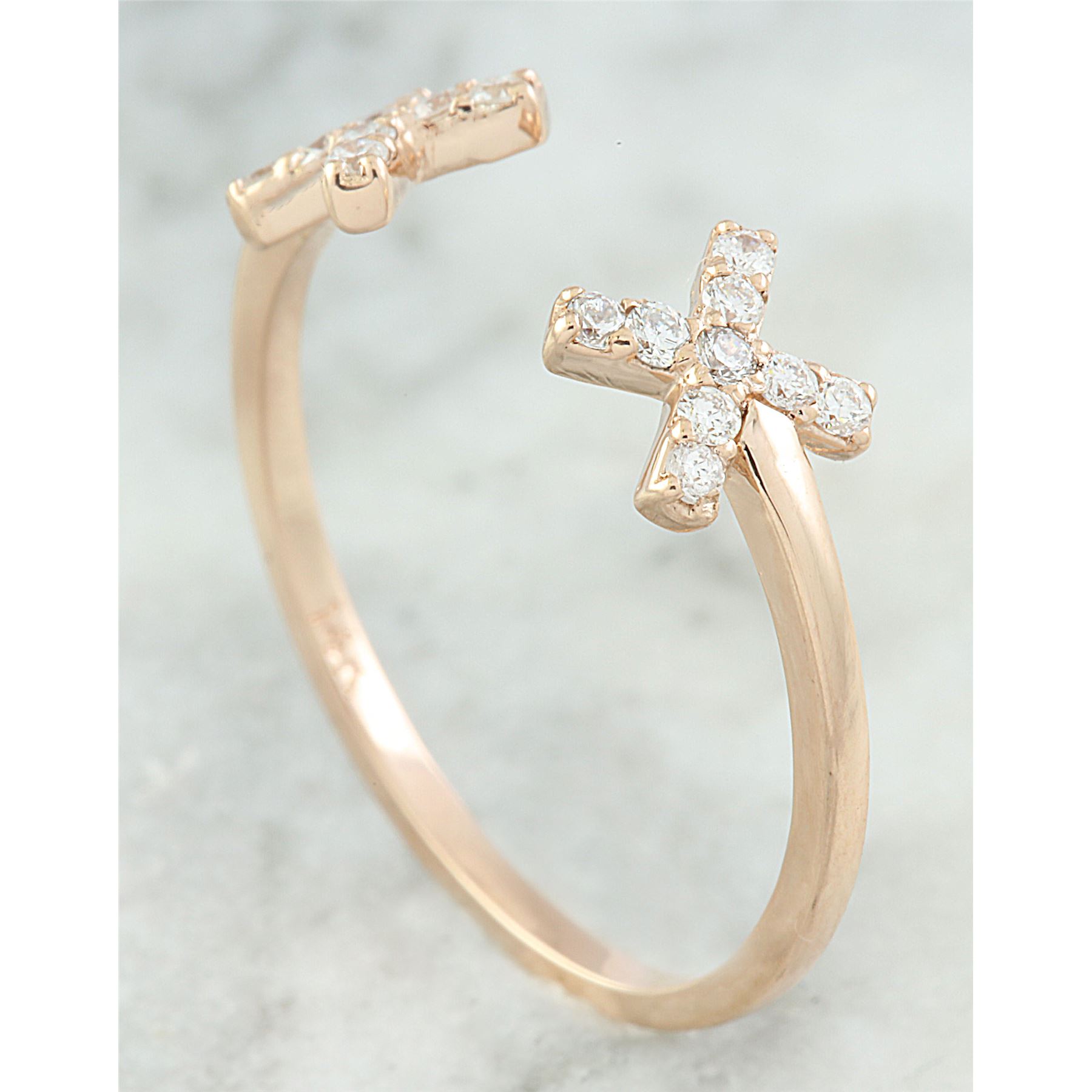 0.10 CTW Diamond 18K Rose Gold Double X Open Front Ring