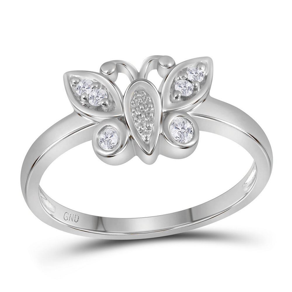 REF-19K4W- SKU: GD29604 ---- 0.10 CTW Diamond Butterfly Bug Cluster Ring 10KT White Gold