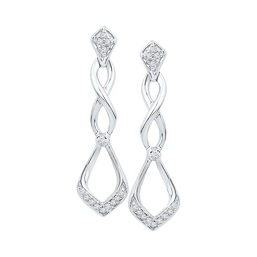 REF-14W9K- SKU: GD108559 ---- 0.10 CTW Diamond Cascading Teardrop Dangle Earrings 10KT White Gold