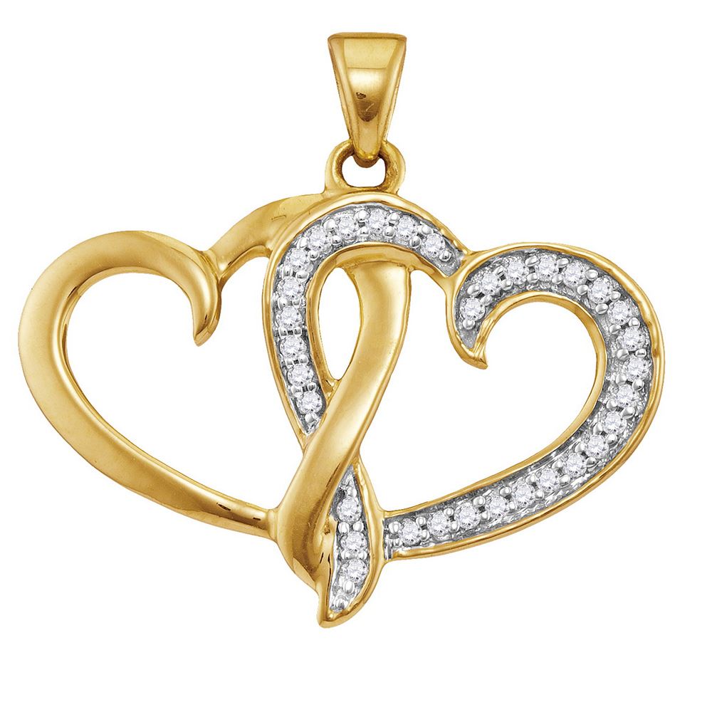 REF-9X7Y- SKU: GD114985 ---- 0.10 CTW Diamond Double Joined Heart Pendant 10KT Yellow Gold