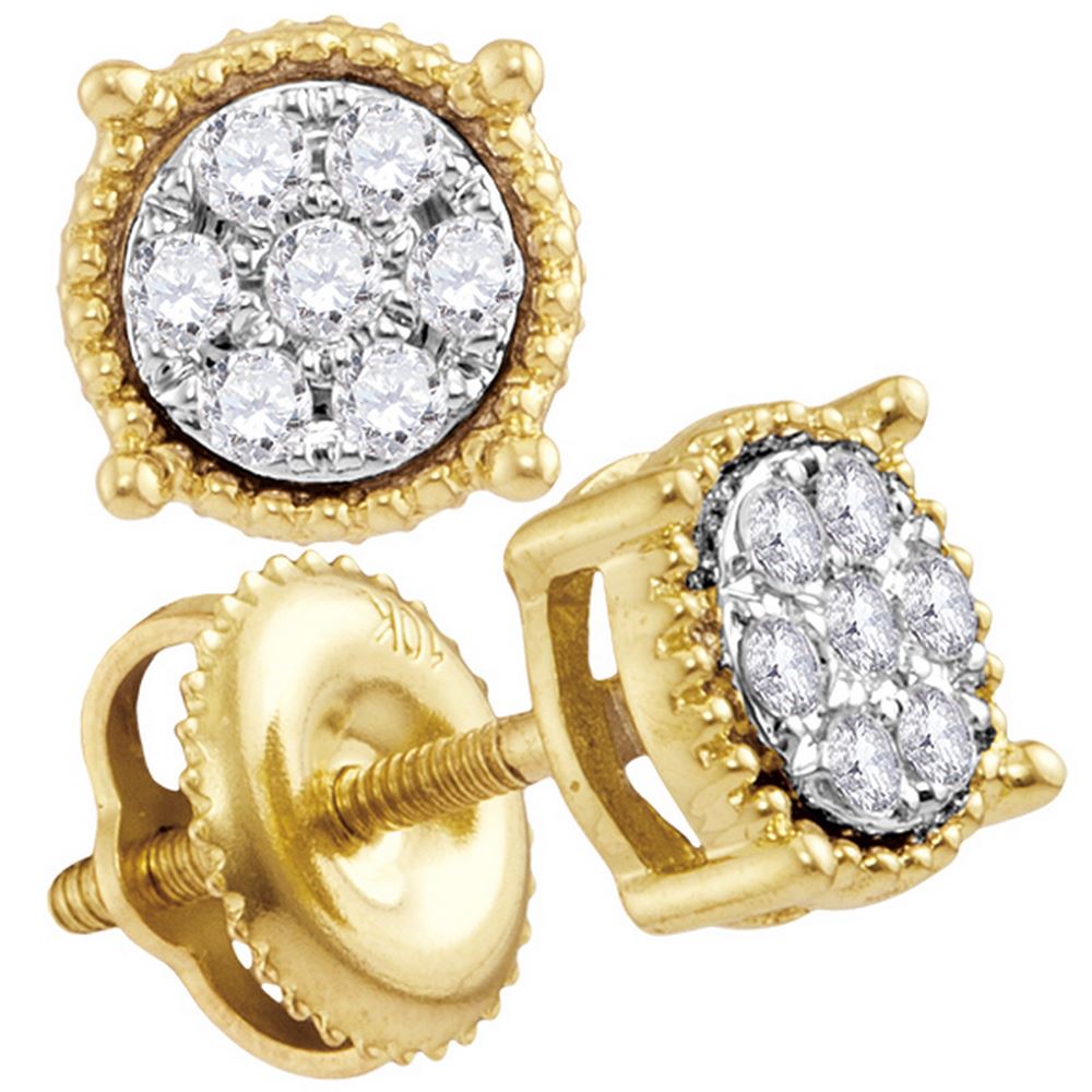 REF-10K5W- SKU: GD114050 ---- 0.10 CTW Diamond Flower Cluster Milgrain Stud Earrings 10KT Yellow Gold