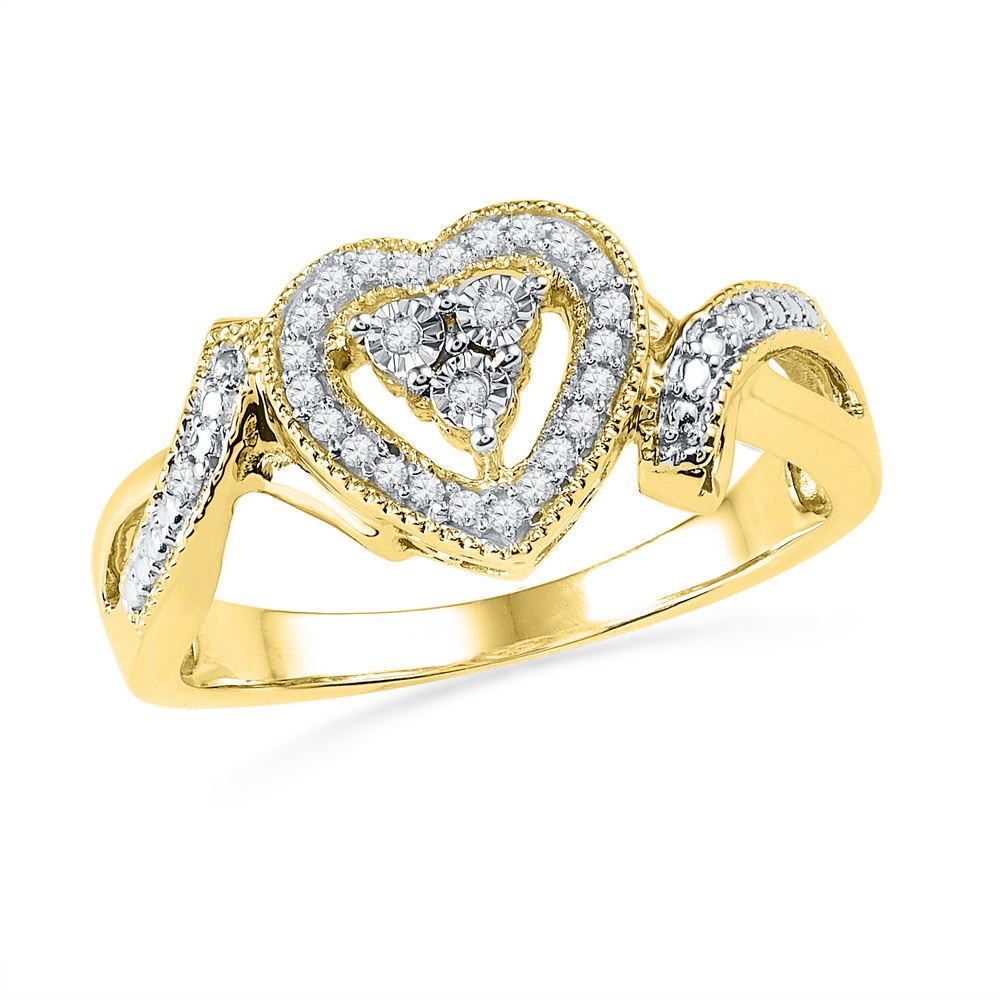REF-22K4W- SKU: GD101816 ---- 0.10 CTW Diamond Heart Cluster Ring 10KT Yellow Gold