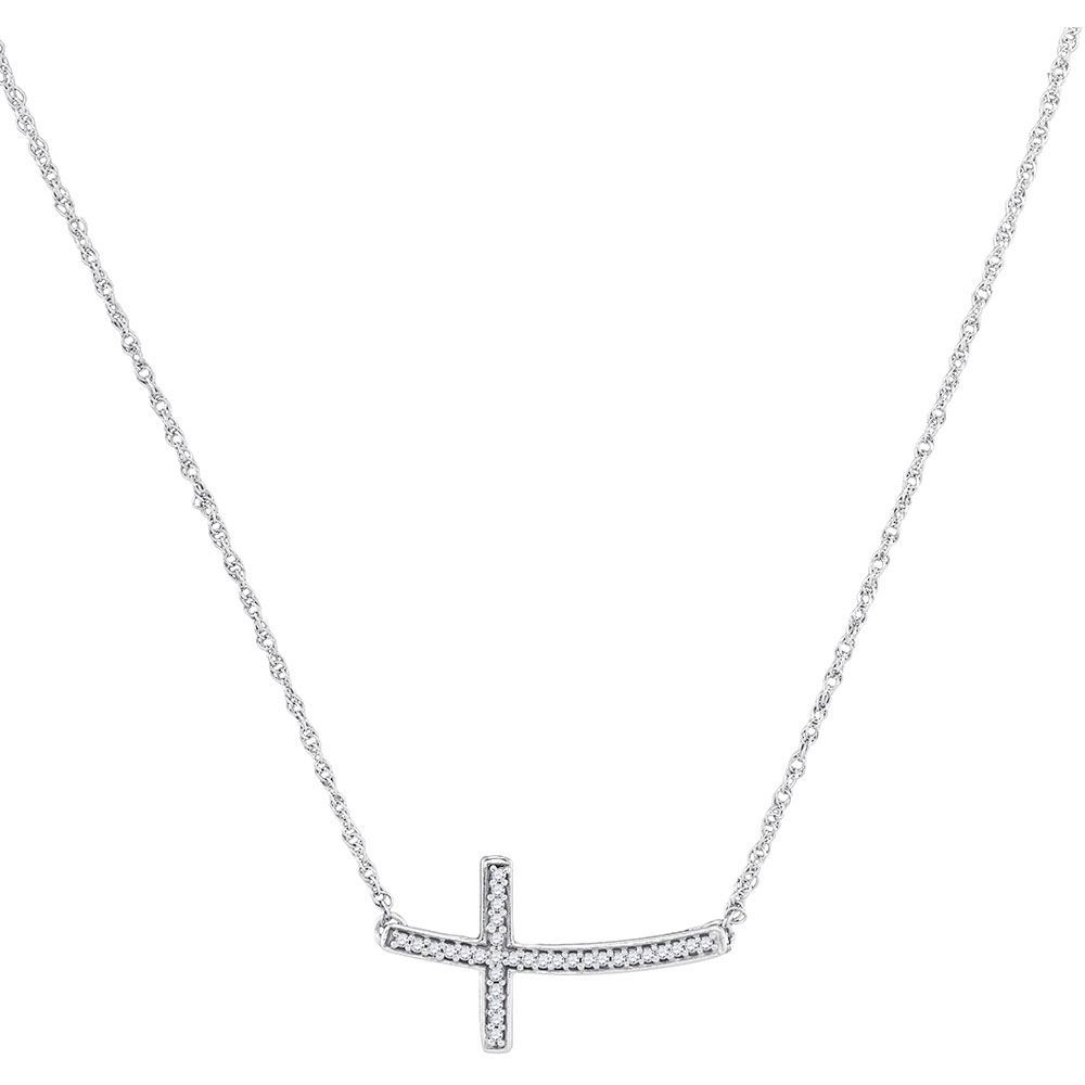 REF-19W4K- SKU: GD97338 ---- 0.10 CTW Diamond Horizontal Cross Pendant 10KT White Gold