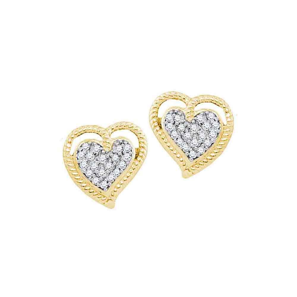 REF-14K9W- SKU: GD93568 ---- 0.10 CTW Diamond Milgrain Heart Cluster Earrings 10KT Yellow Gold