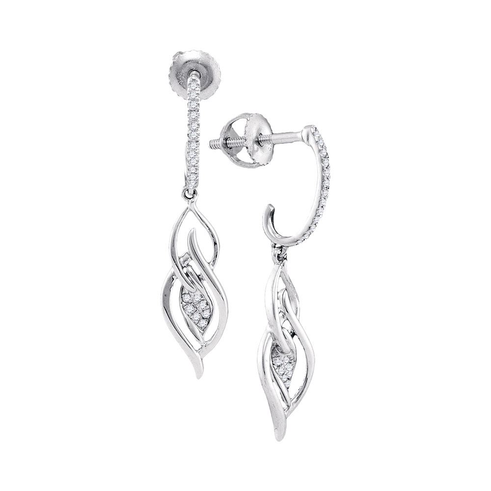 REF-18W2K- SKU: GD97831 ---- 0.10 CTW Diamond Oblong Cluster Dangle Earrings 10KT White Gold