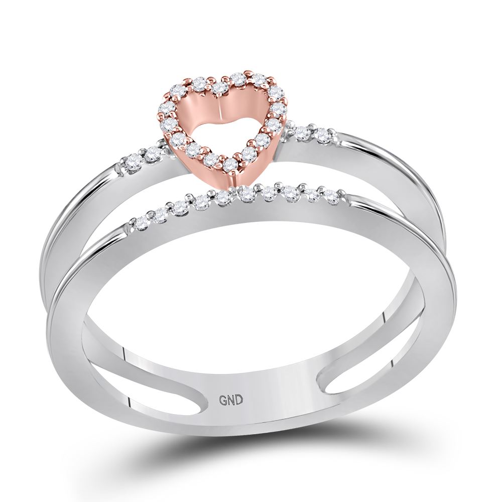 REF-16H4M- SKU: GD111944 ---- 0.10 CTW Diamond Split-shank Heart Ring 10KT Two-tone Gold
