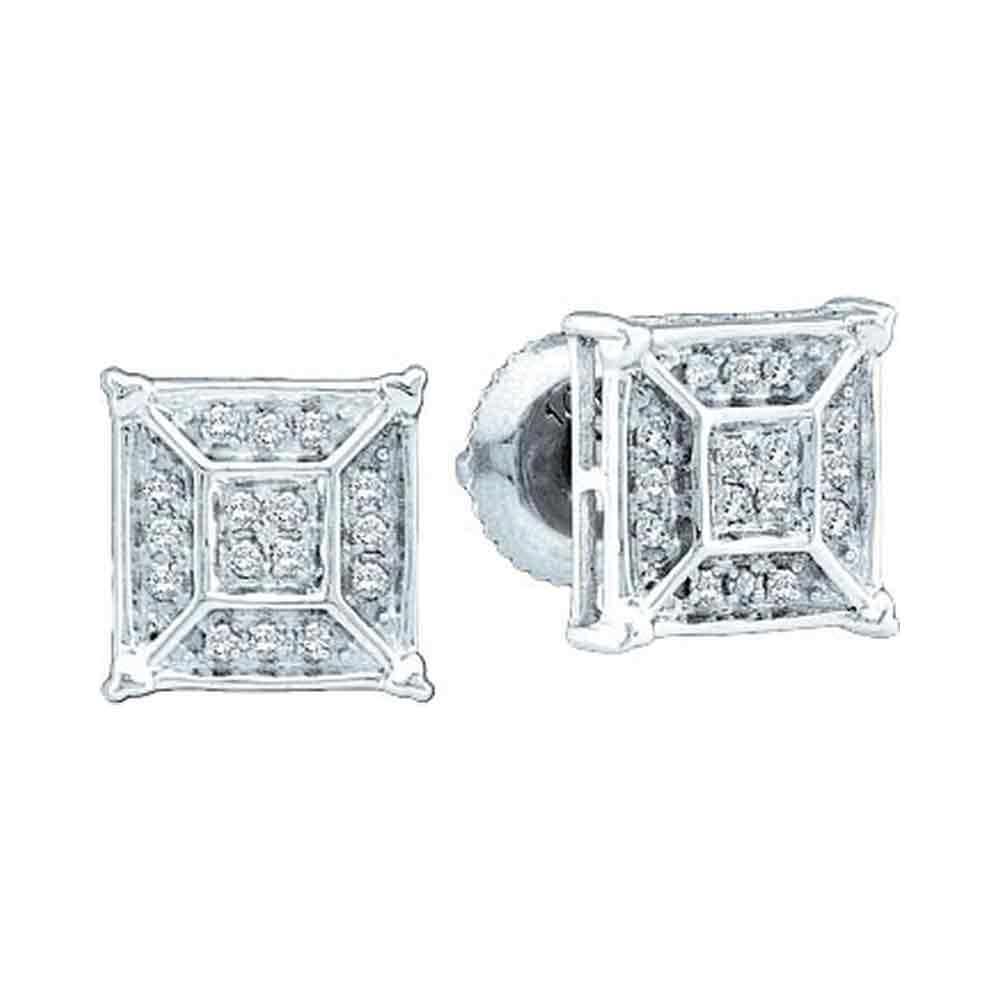 REF-16Y4X- SKU: GD40496 ---- 0.10 CTW Diamond Square Geometric Cluster Earrings 10KT White Gold