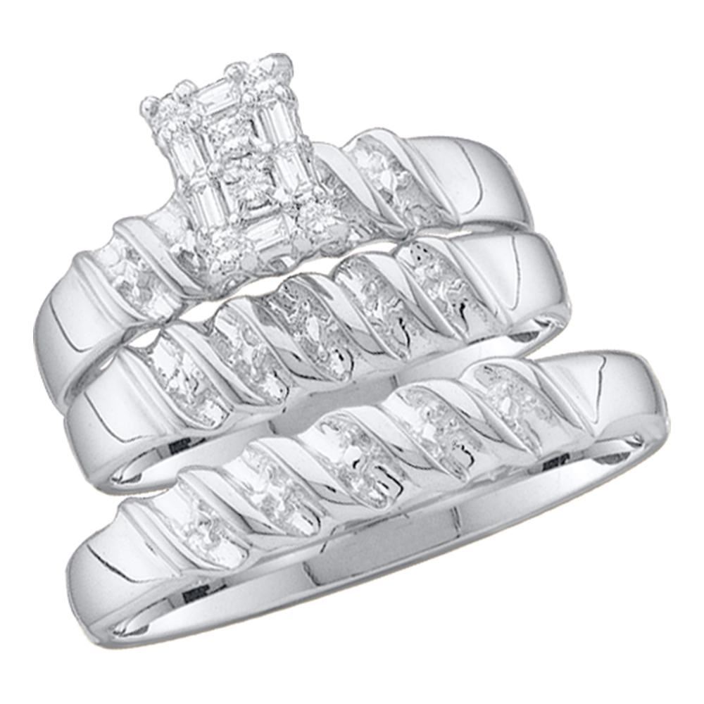 REF-30Y2X- SKU: GD16343 ---- 0.10 CTW His & Hers Diamond Cluster Matching Bridal Ring 10KT White Gold