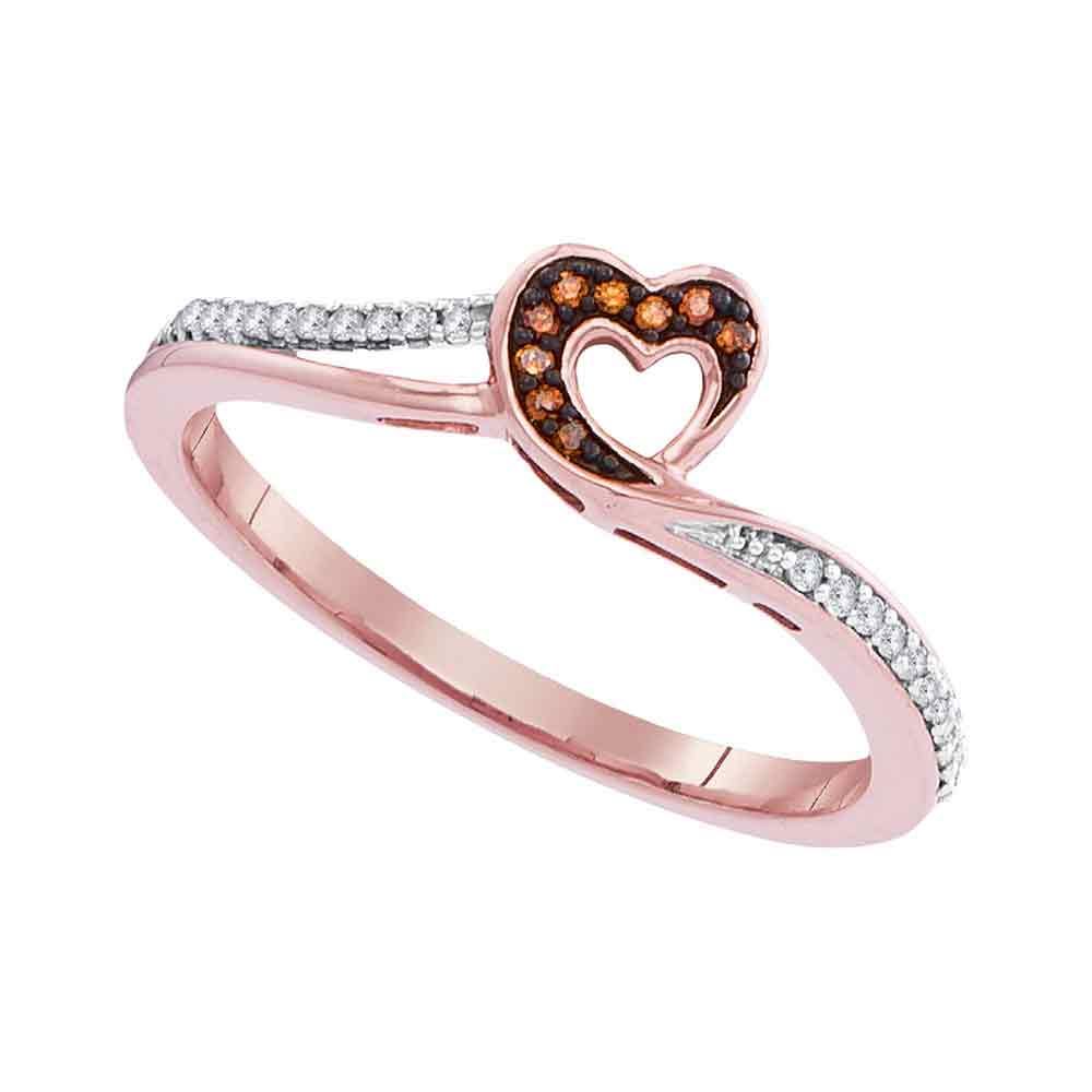 REF-13M4H- SKU: GD99266 ---- 0.10 CTW Red Color Diamond Heart Love Ring 10KT Rose Gold