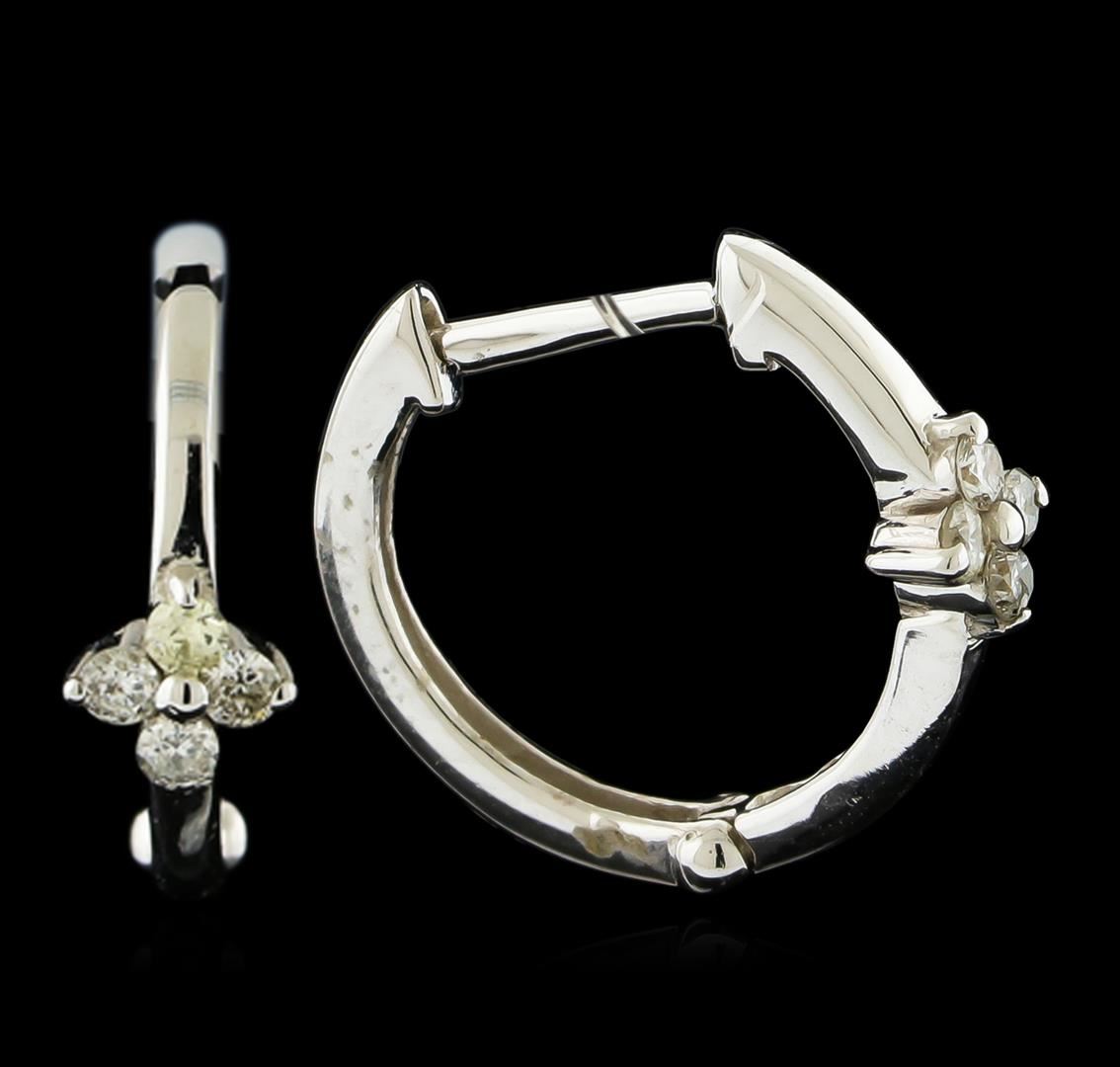One pair of earrings featuring: 14KT white gold weighing approximately 1.1 grams containing diamonds with a total weight of 0.1ct.