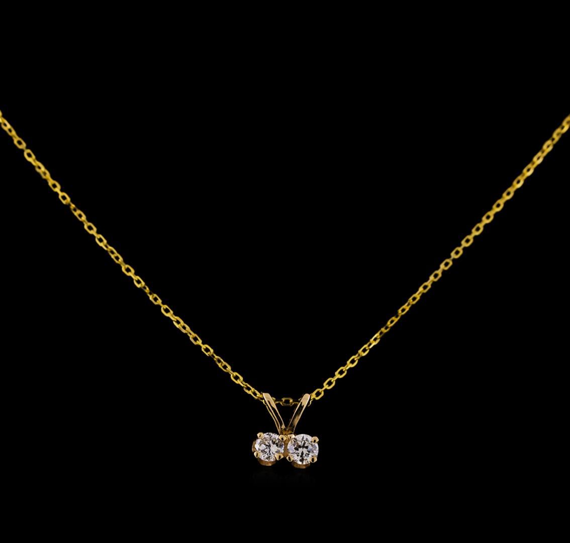 One pendant and chain featuring: 14KT yellow gold weighing 0.50 grams containing two diamonds weighing 0.10ctw.