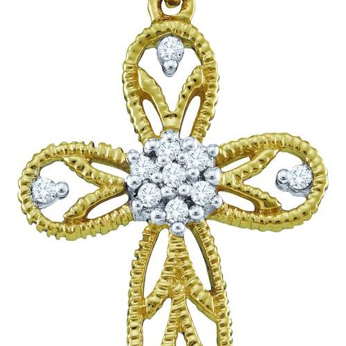 REF-8R2H ---- 0.10CT Diamond Cross 10KT Pendant Yellow Gold - SKU: GD 15849