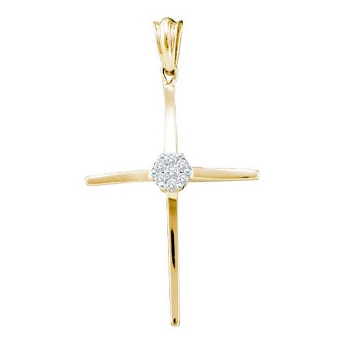 REF-20H9X --- 0.10CT Diamond Cross 14KT Pendant Yellow Gold - SKU: 45036