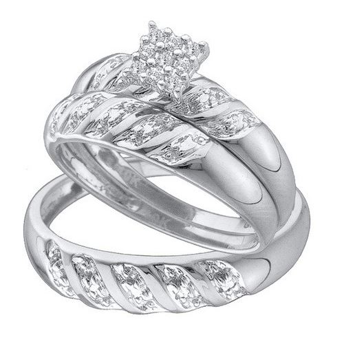 REF-32T2L ---- 0.10CT Diamond Trio Set 10KT Ring White Gold - SKU: 42105