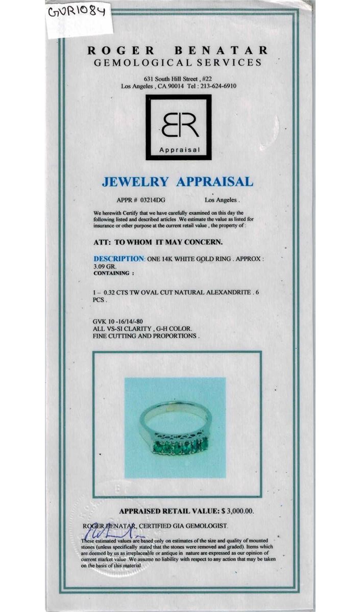 14K WHITE GOLD NATURAL ALEXANDRITE RING:3.09 GRAMS/ALEXANDRITE:0.32CT//#GVR1084