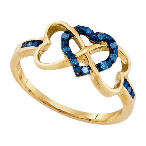 REF-17W9H ---- 0.10CTW White and Blue Diamond Heart 10KT Ring Yellow Gold - SKU: 86977