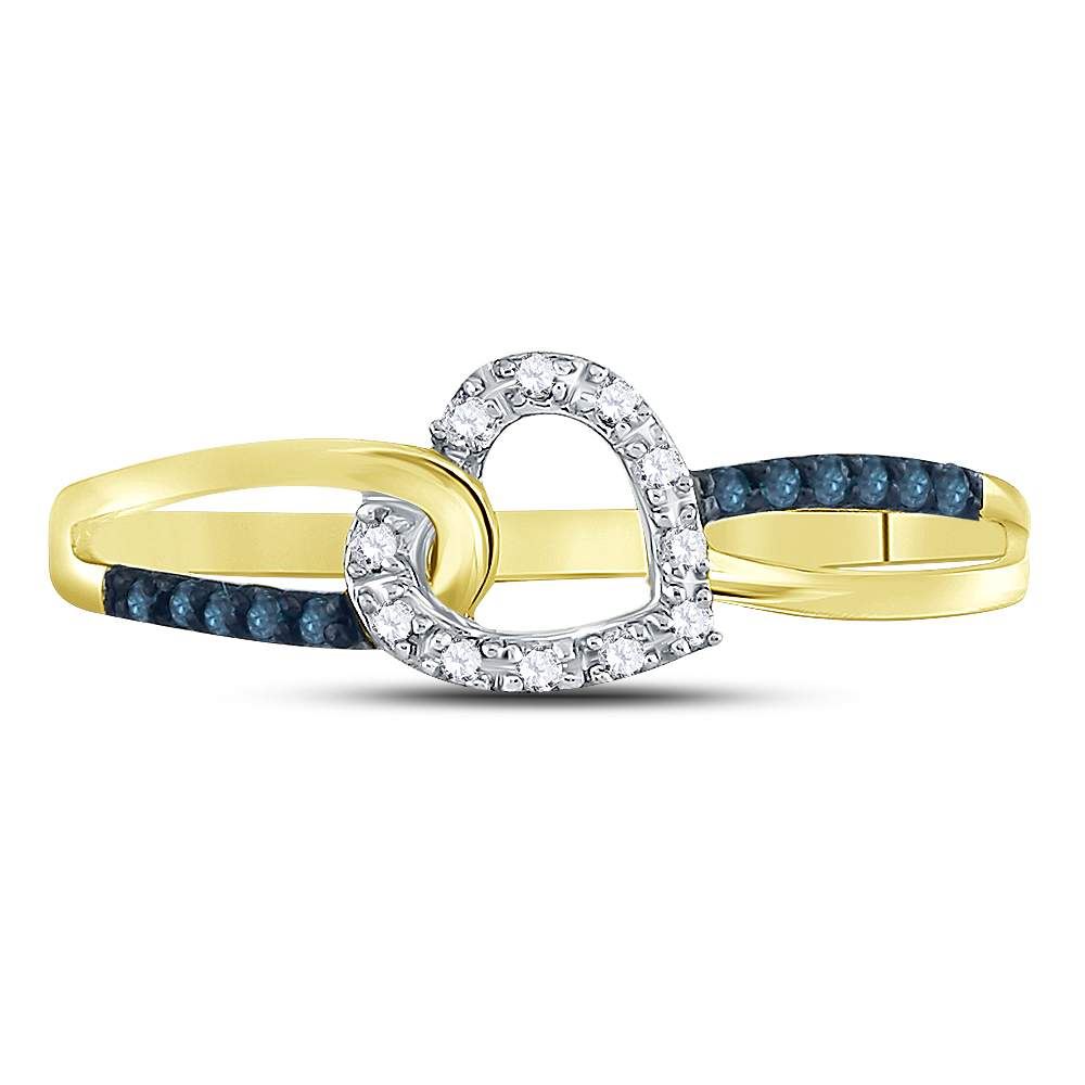 REF-14X9Y- SKU: GD112522 ---- 0.11 CTW Blue Color Diamond Captured Heart Ring 10KT Yellow Gold