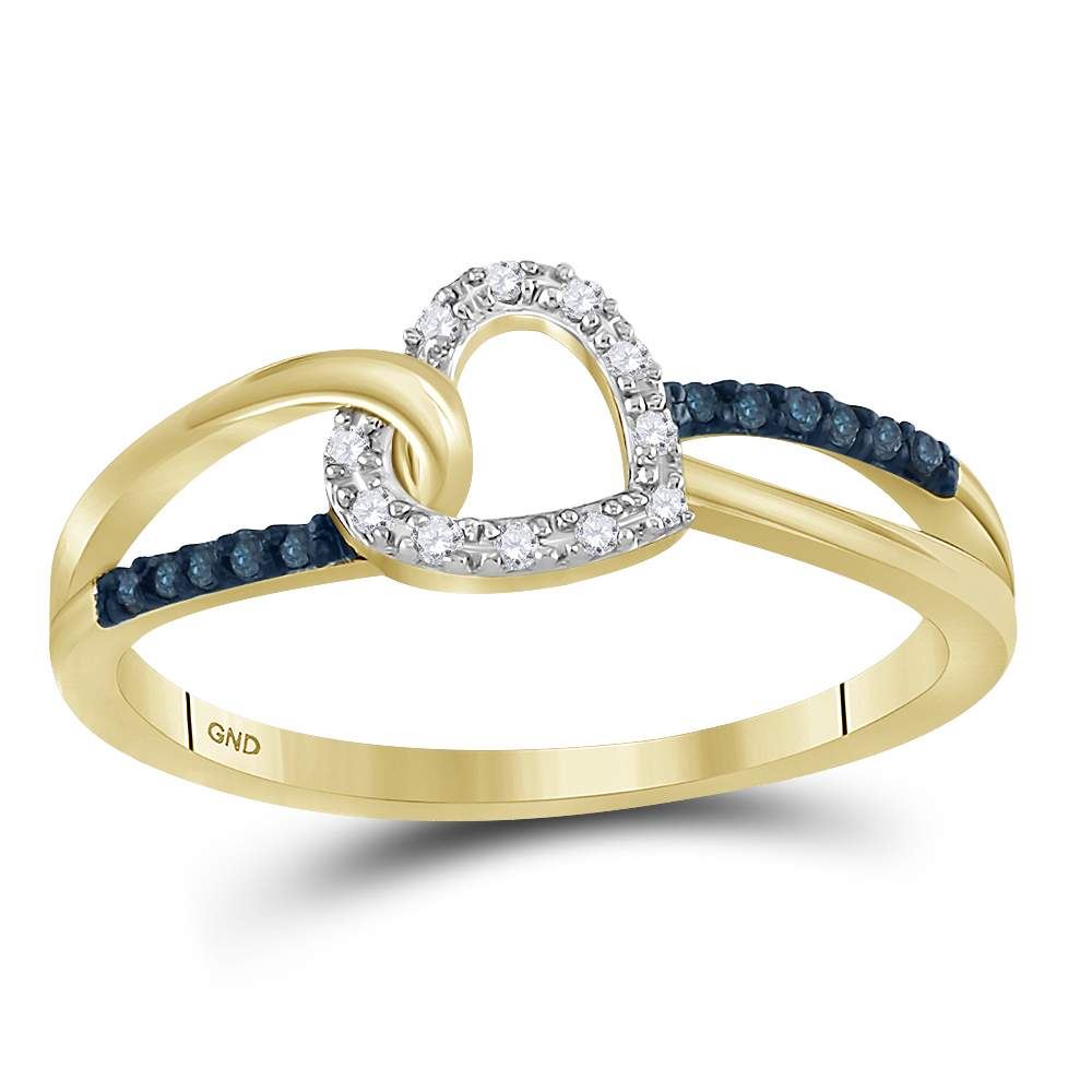 REF-14X9Y- SKU: GD112522 ---- 0.11 CTW Blue Color Diamond Captured Heart Ring 10KT Yellow Gold