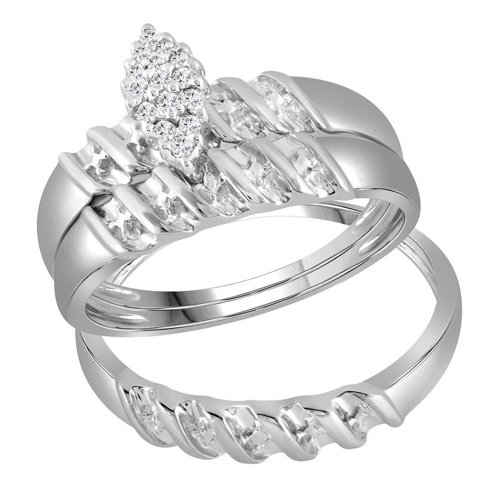 REF-41K3W- SKU: GD22565 ---- 0.11 CTW His & Hers Diamond Cluster Matching Bridal Ring 14KT White Gold