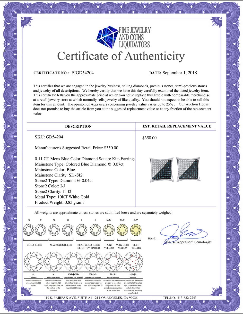 REF-8W9K- SKU: GD54204 ---- 0.11 CTW Mens Blue Color Diamond Square Kite Cluster Earrings 10KT White Gold