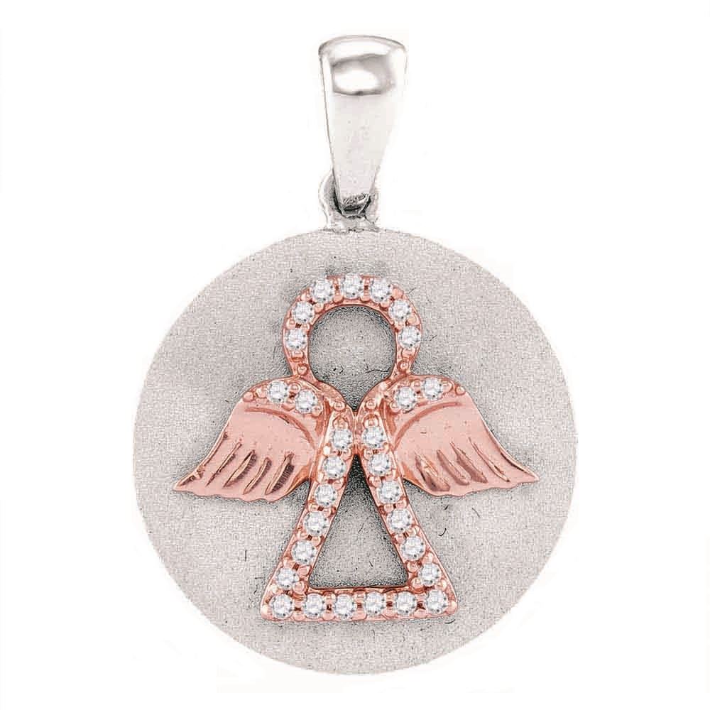 REF-6M6H- SKU: GD97869 ---- 0.12 CTW Diamond Angel Medallion Pendant 10KT Two-tone Gold