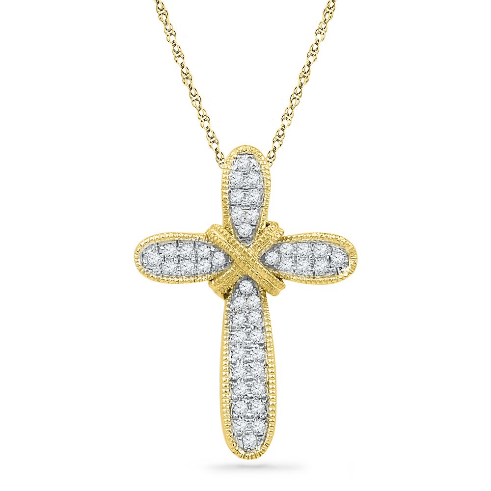REF-12N2F- SKU: GD101031 ---- 0.12 CTW Diamond Bound Cross Pendant 10KT Yellow Gold