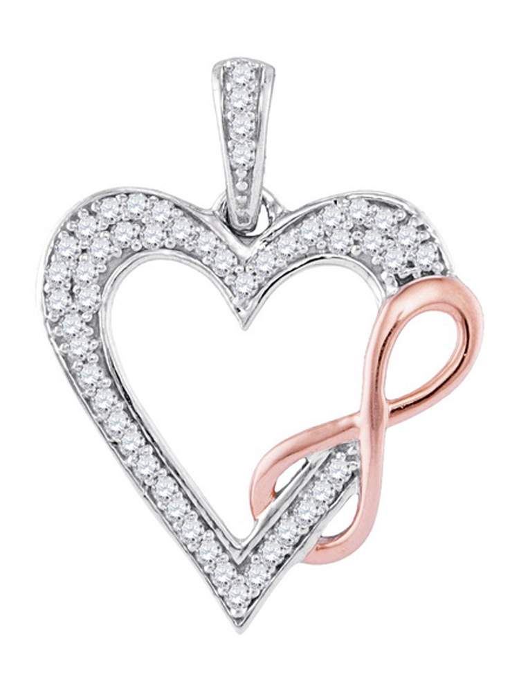 REF-12W8K- SKU: GD98425 ---- 0.12 CTW Diamond Heart Infinity Pendant 10KT Two-tone Gold