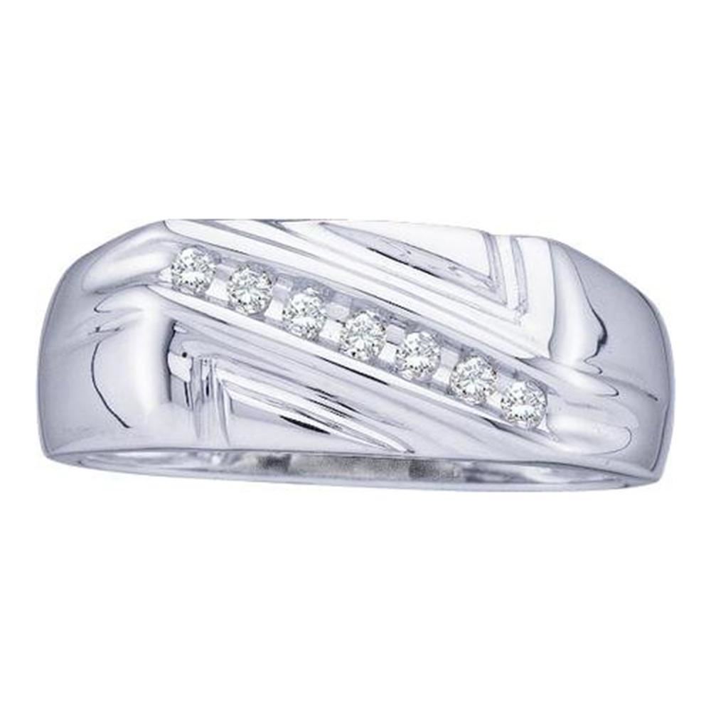 REF-20N9F- SKU: GD16759 ---- 0.12 CTW Mens Diamond Diagonal Row Wedding Ring 10KT White Gold