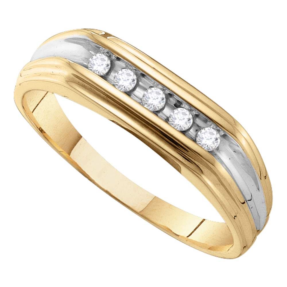 REF-18M2H- SKU: GD55014 ---- 0.12 CTW Mens Diamond Single Row Two-tone Wedding Ring 10KT Yellow Gold