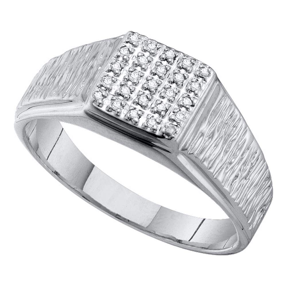 REF-19W4K- SKU: GD54983 ---- 0.12 CTW Mens Diamond Square Cluster Brushed Ring 10KT White Gold