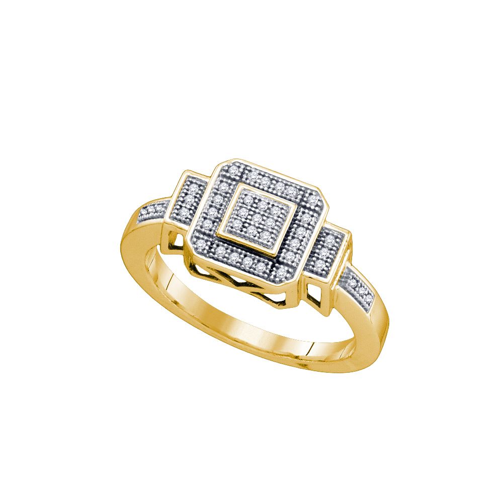 REF-32T2K ---- 0.12 CTW Natural Diamond Square Cluster Ring 10K Yellow Gold - SKU: GD64934