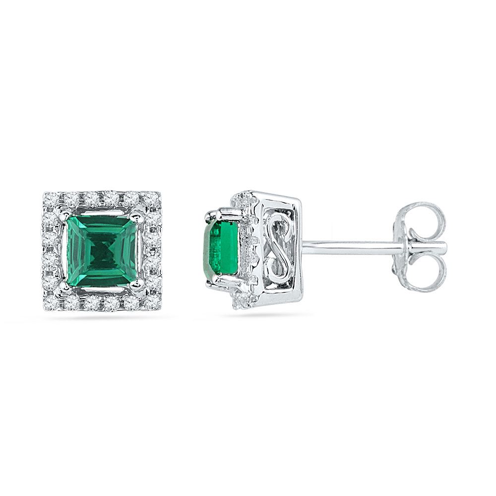 REF-18X2Y- SKU: GD99733 ---- 0.12 CTW Princess Created Emerald Solitaire Diamond Stud Earrings 10KT White Gold